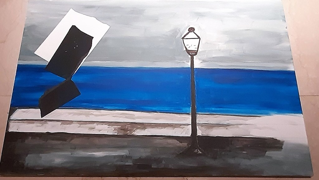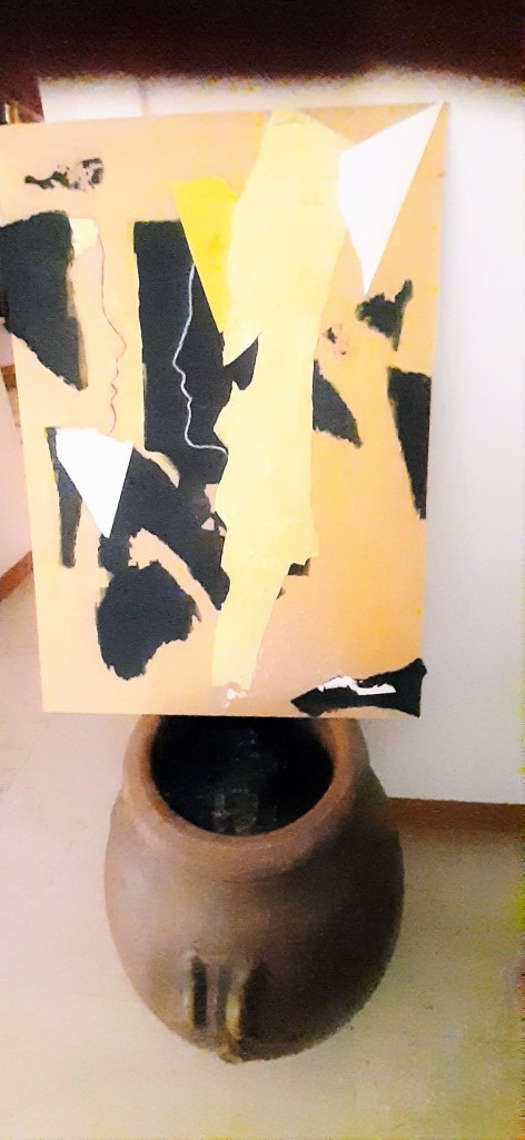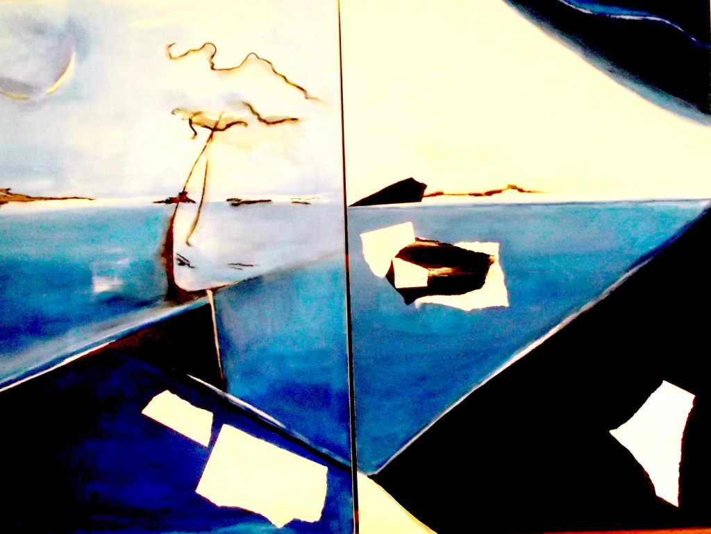 Ad alimentare questo dialogo sulle tele di Adriana Pignataro è la carta, la sua musa, che le permette di raccontare la perfetta sinergia delle armonie di colore. Tagliata, strappata e talvolta nascosta eccola, nelle sue infinite variazioni a fare da chiave per entrare nel mondo dell’artista: questa volta tono su tono nelle sfumature dell’azzurro e del blu, dando vita ad un’abile fusione, dove si intrecciano i contrasti cromatici unici e senza tempo, facendoci dimenticare la definizione di colori freddi.